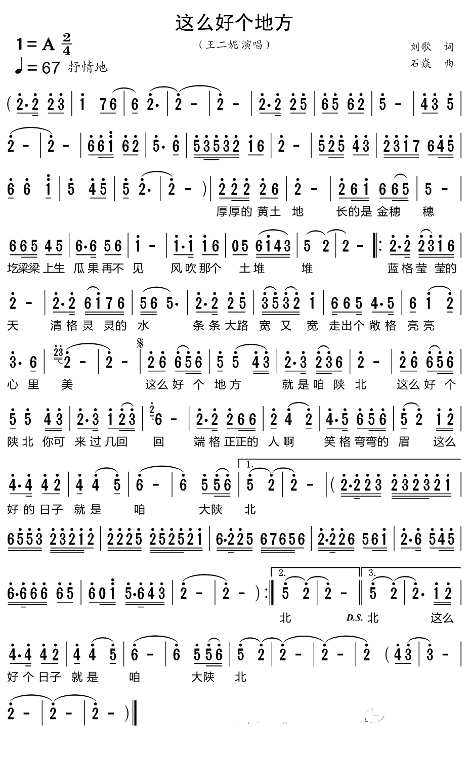 这么好个地方简谱-王二妮演唱歌曲-小叶子159曲谱