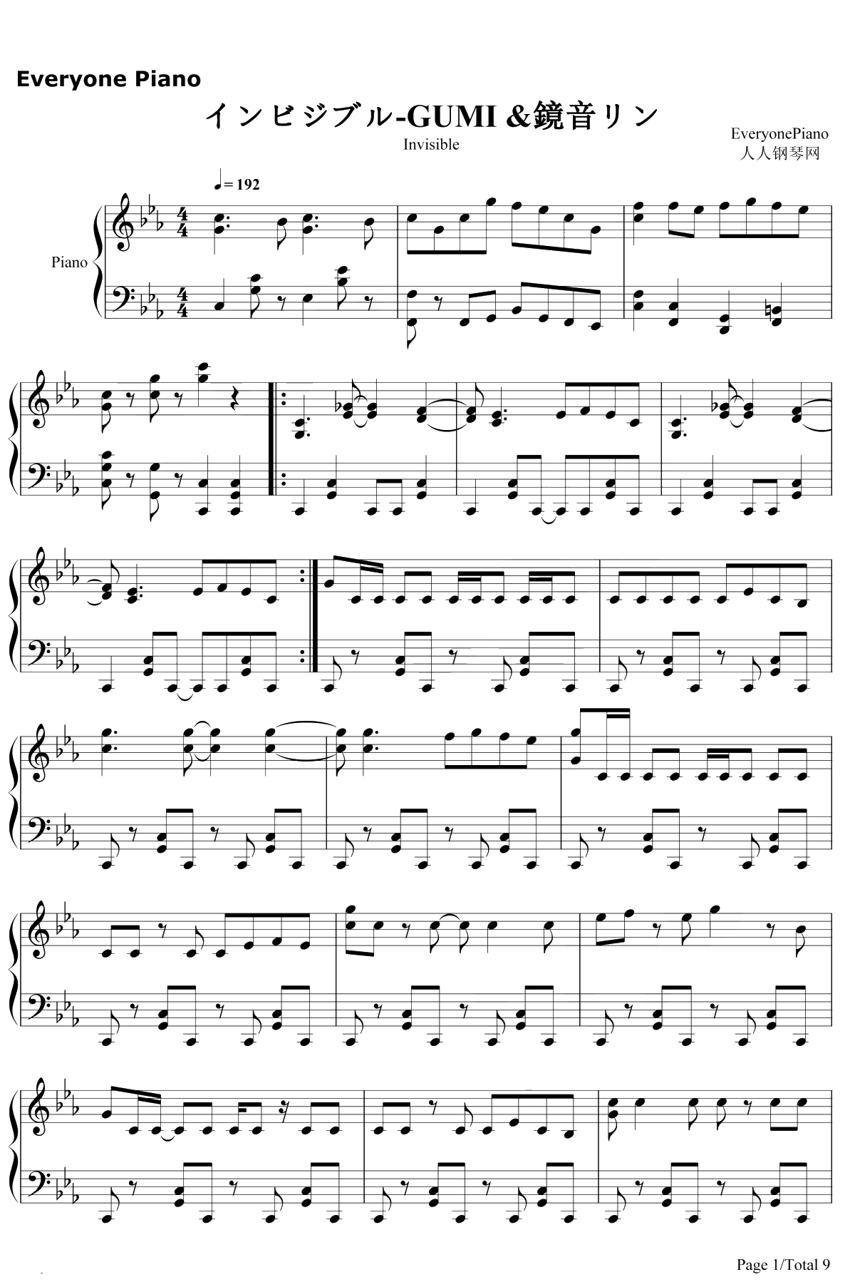 歌词下方是インビジブル钢琴谱,欢迎大家使用。