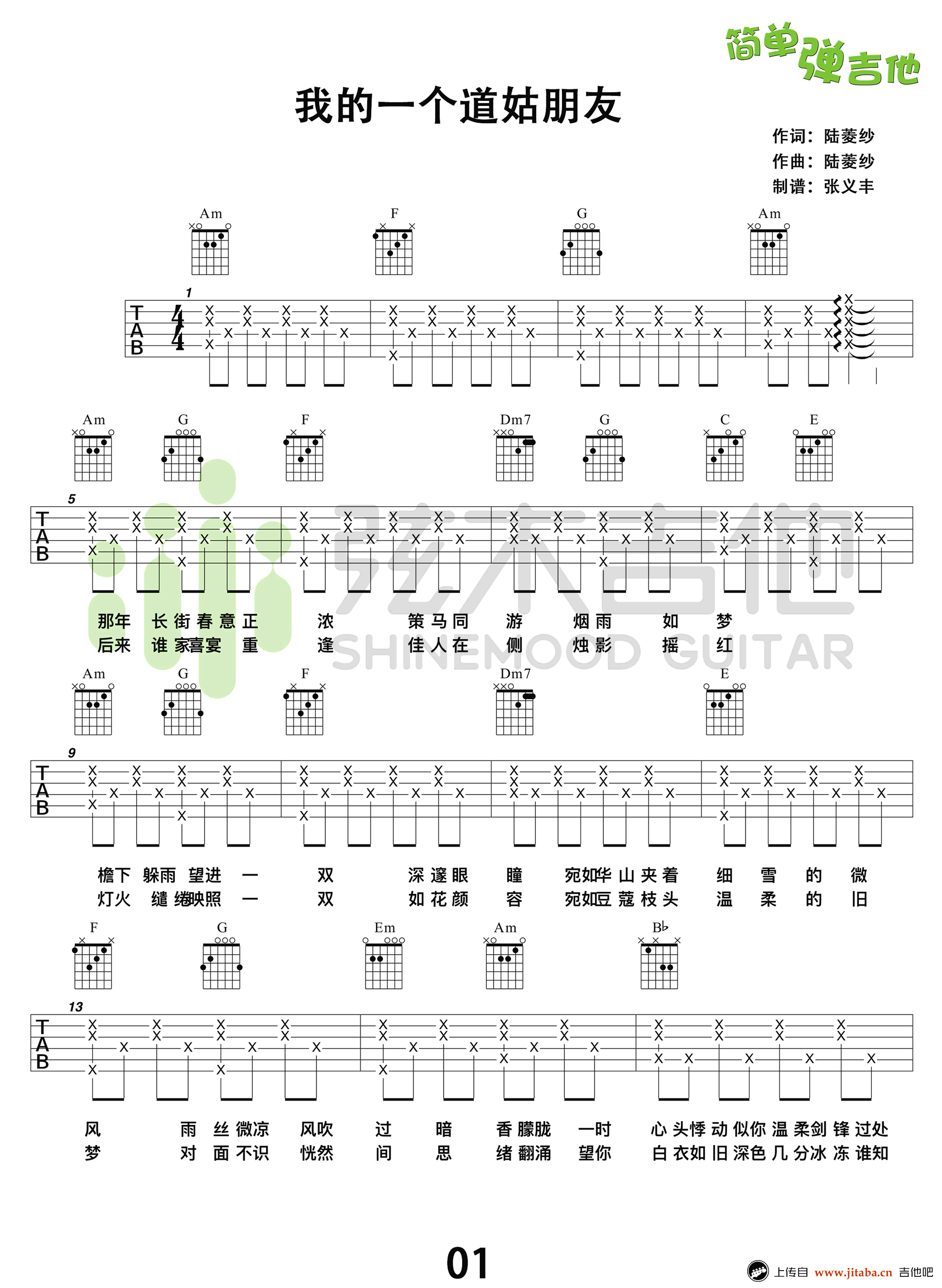 我的一个道姑朋友吉他谱,以冬演唱,原曲来自于日语版タイナカ彩智《一番星》,剑网3剧情歌,中国古风歌词意境绝美让人惊艳。 我的一个道姑朋友六线谱,简单弹吉他的弦木吉他编配,男生不用变调夹,女生建议夹5-7品,感谢张义丰老师为大家带来的弹唱视频,琴友们参照演示练习起来吧。
