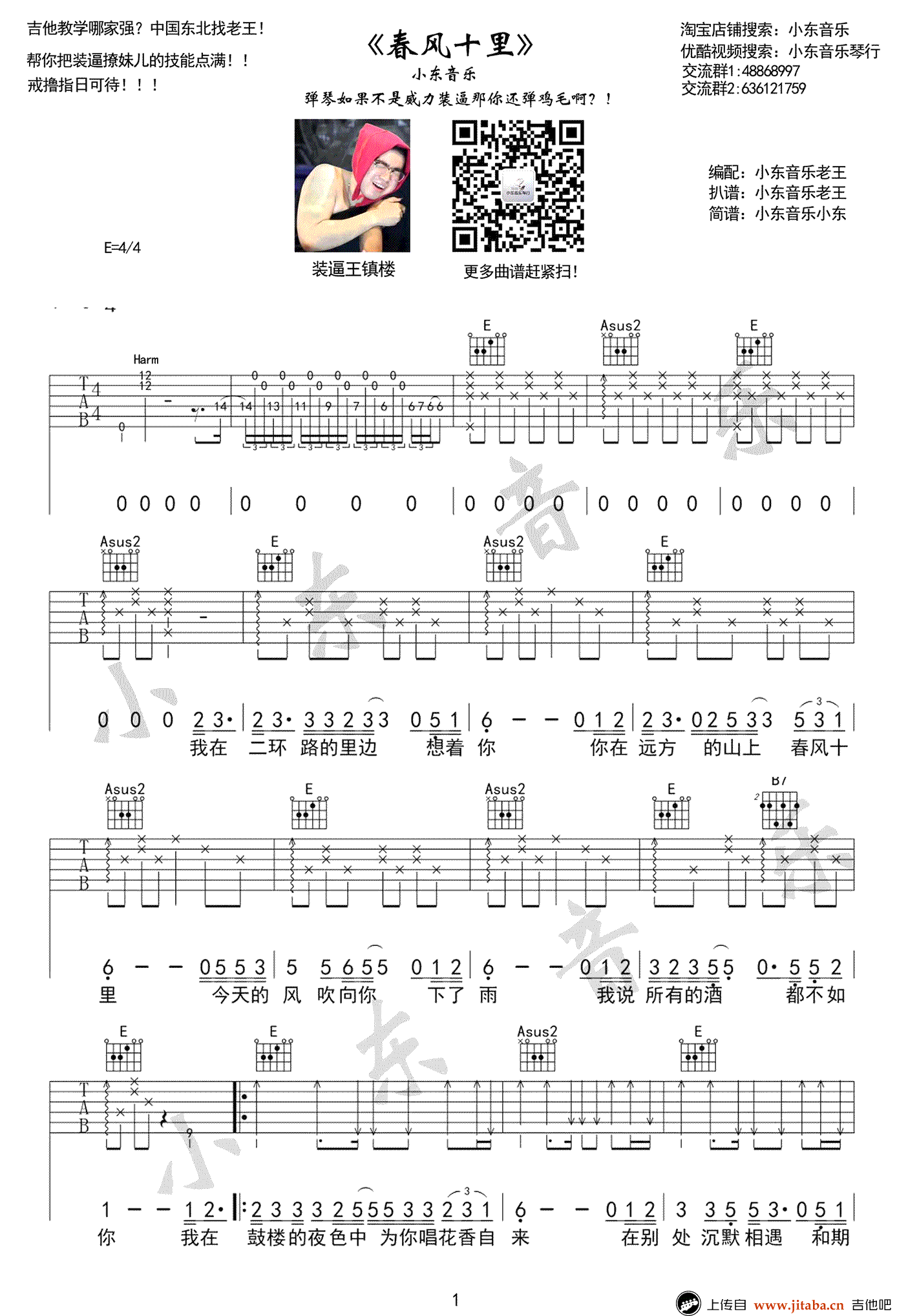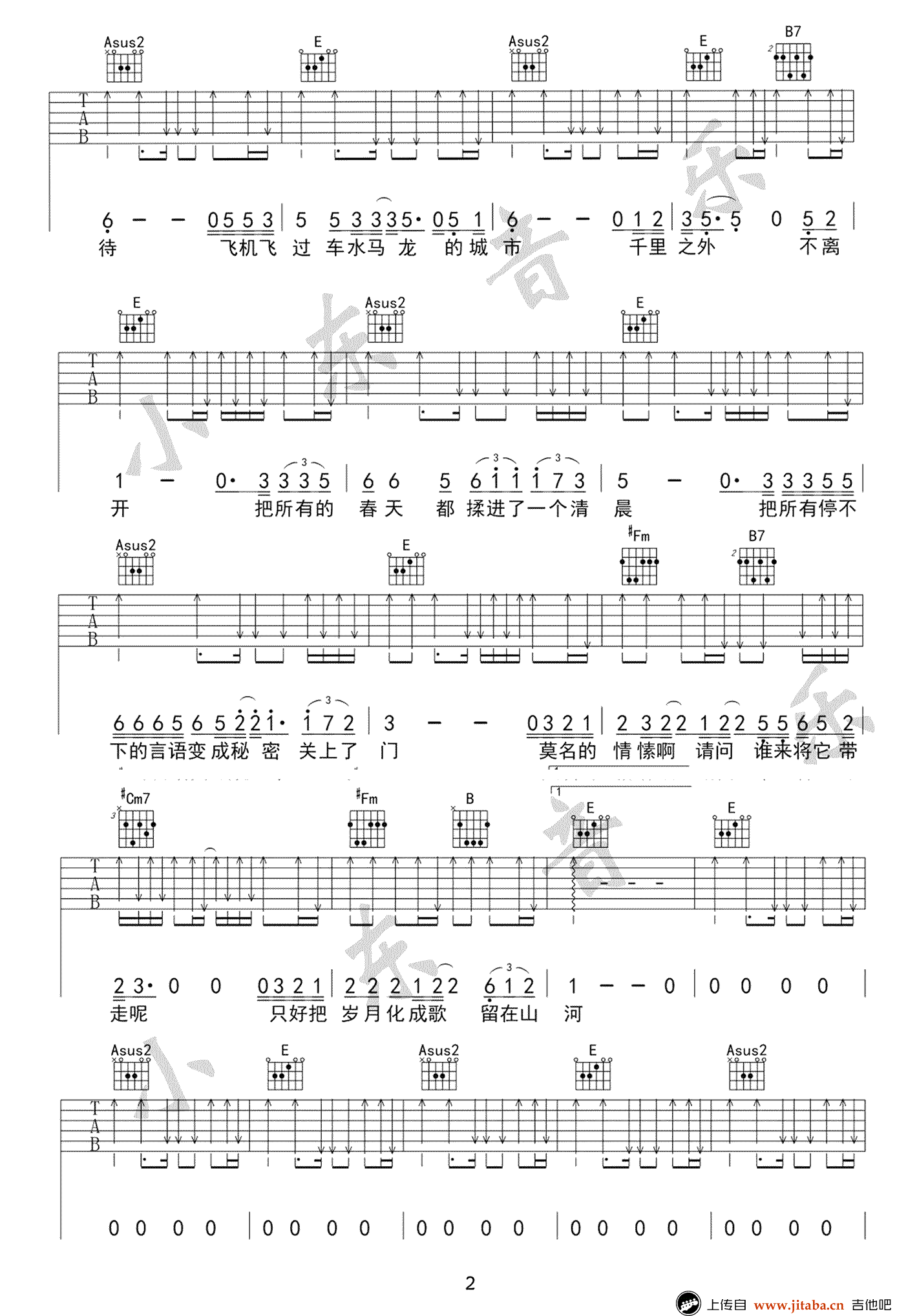 春风十里吉他谱,鹿先森乐队的民谣歌曲代表作品,一耳钟情,马上进入单曲循环的歌曲,一曲《春风十里》就能够让人荡漾了整个春夏。气质温和,态度坚定,鹿先森一点一点唱着生活的给予与索取,还有人世间那点小情小爱。 吉他吧今次送上的是小东音乐编配的版本,春风十里六线谱,高清弹唱谱三张图片谱例。
