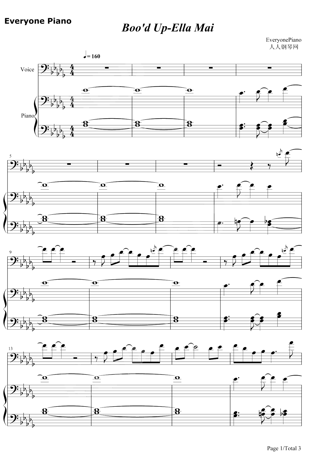 Boo'd Up双手简谱和五线谱完全对应。