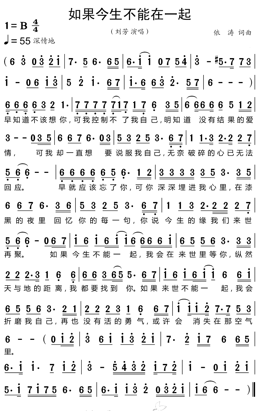 如果今生不能在一起简谱-刘芳演唱歌曲-小叶子159曲谱