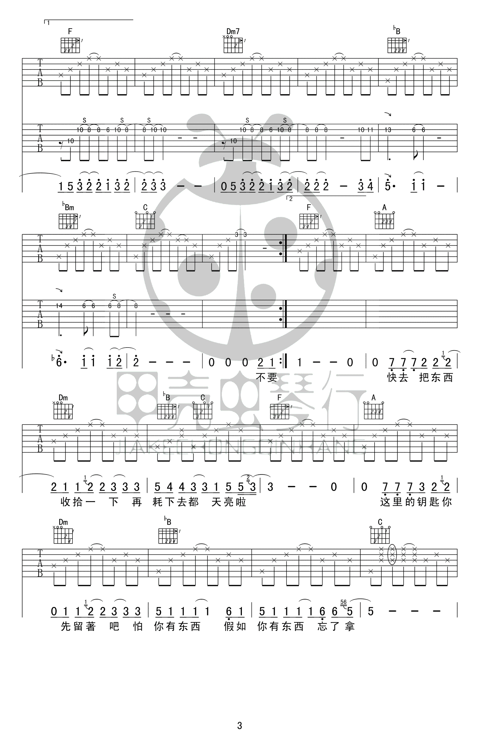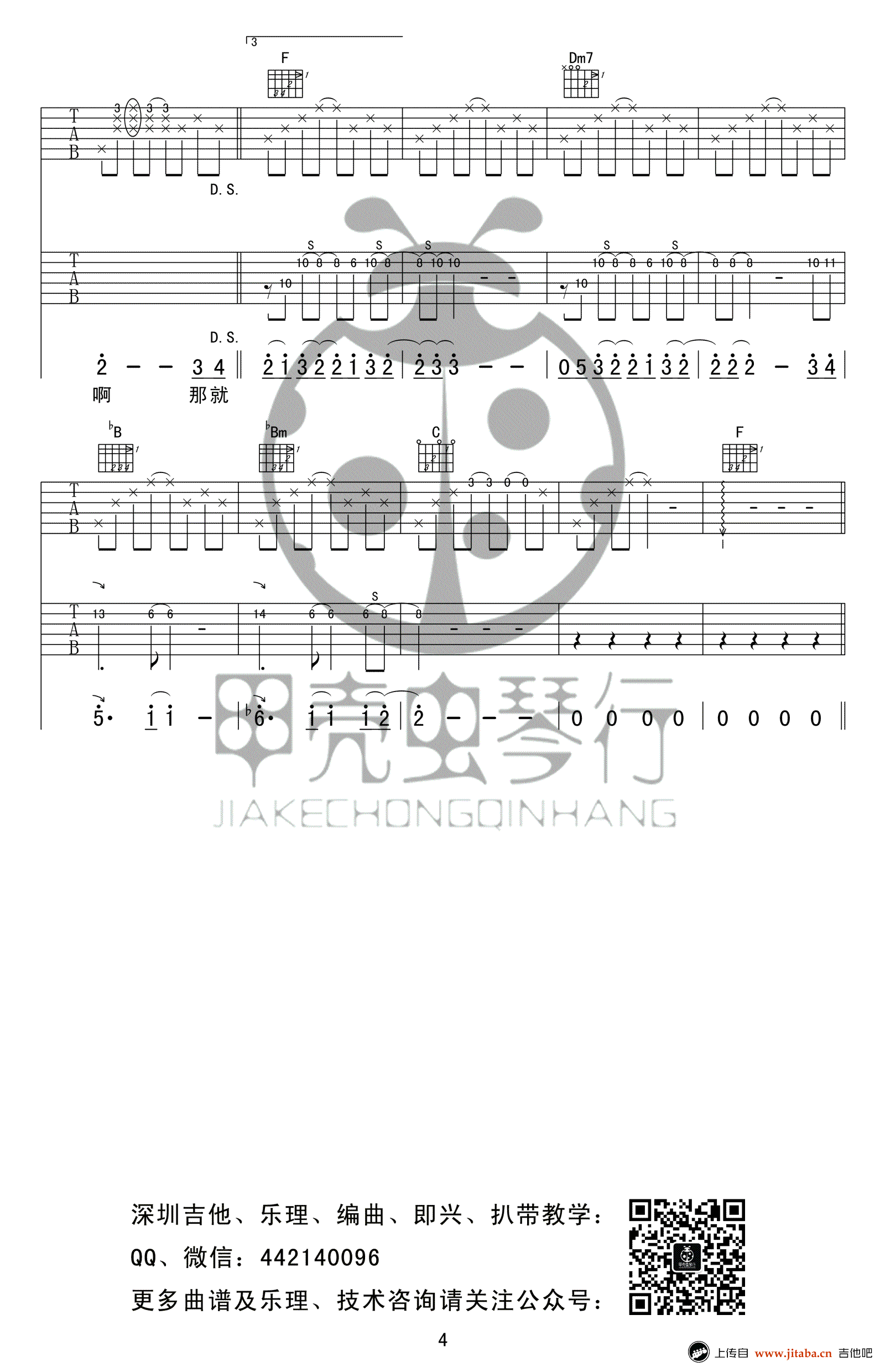 动力火车《那就这样吧》吉他谱,F调指法,高清弹唱谱,那就这样吧六线谱,完整版共四张图片谱例。感谢甲壳虫琴行编配,吉他吧收藏推荐。 也许只是在听到久违的熟悉的歌声,想起了记忆中的某个人,想起生命中的某个过去,总有一些旋律属于你生命中的某一个情景,某一段过往,每当再听到这段熟悉的旋律,那回忆一定会被勾起,只是随着时间,会悲伤,会平静,会感到幸福。