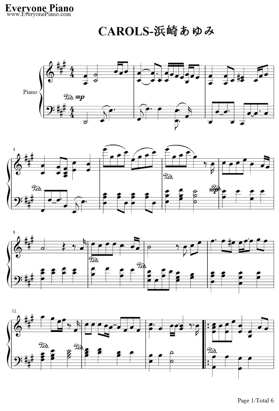 歌词下方是CAROLS钢琴谱,欢迎大家使用。