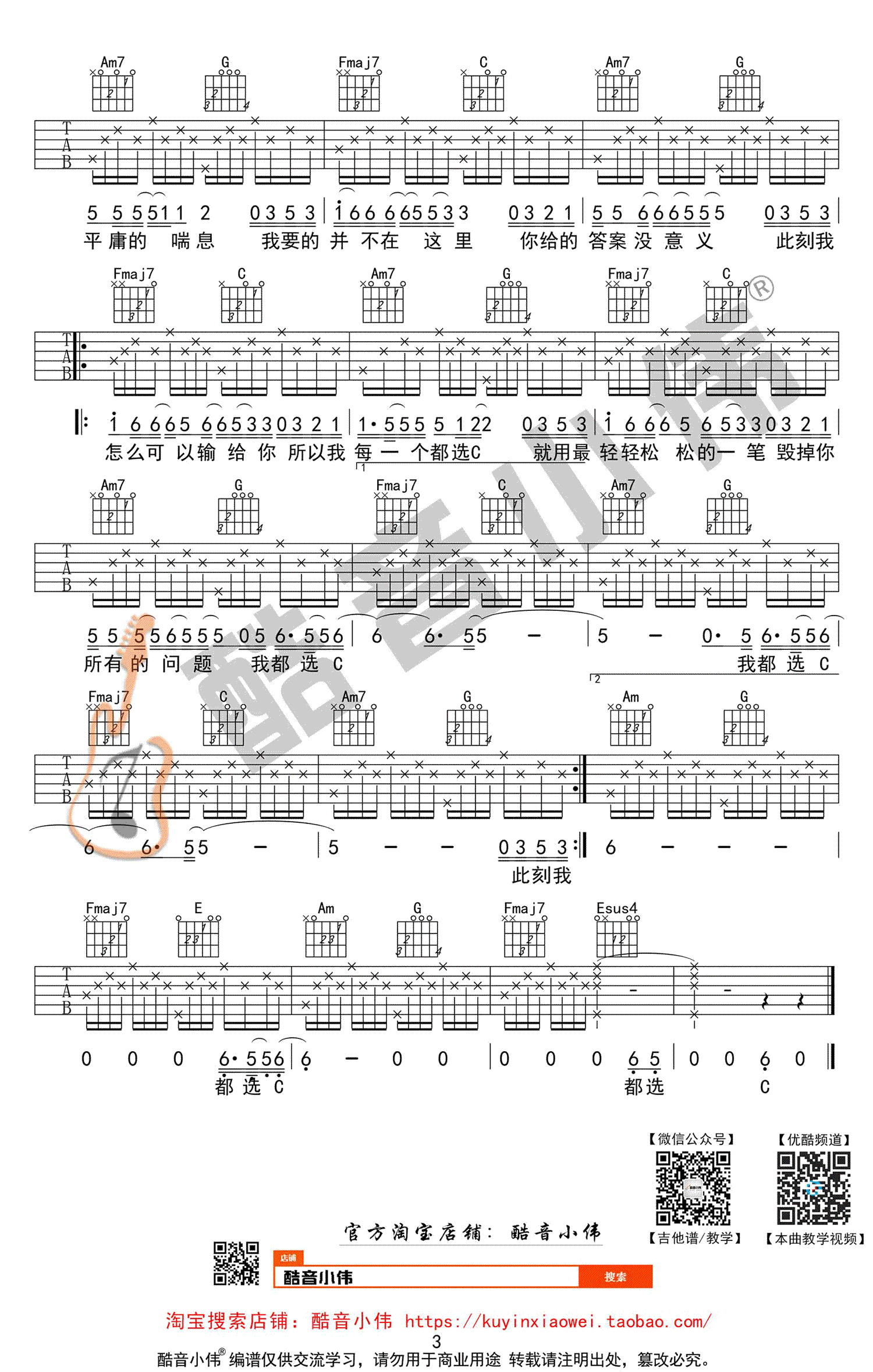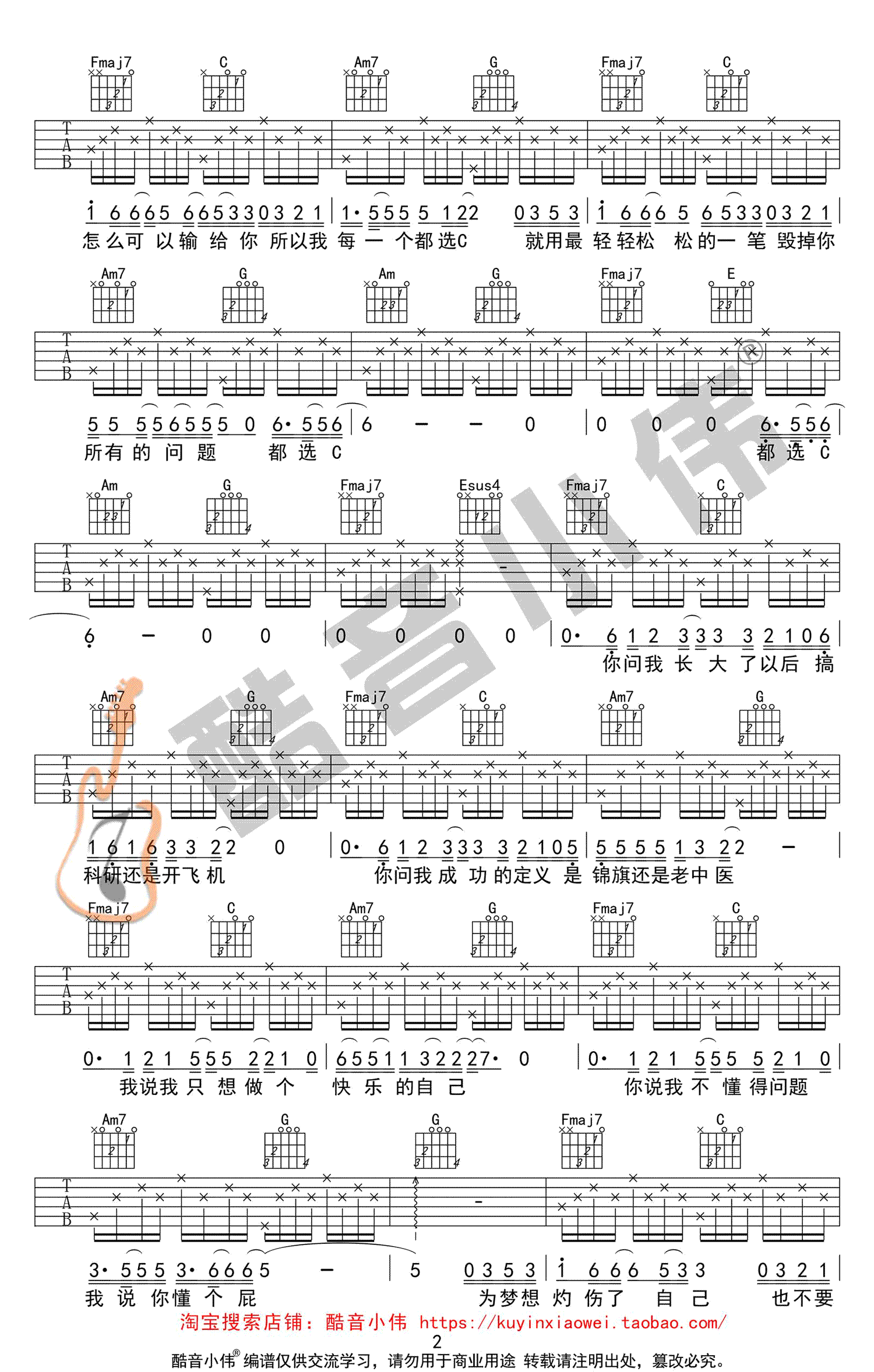 都选C吉他谱,C调简单版,三张高清图片谱,大鹏电影《缝纫机乐队》宣传曲,都选C六线谱,原调G,变调夹推荐男生4-7品,女生0-2品。酷音小伟编配出品,吉他吧网站上传收藏。 一首好听的励志歌曲,唱出为理想努力打拼和面对困难坚持不放弃的精神。喜欢用音乐为平凡的生活增添出有趣的色彩,愿每一个小人物都有自己的大梦想。