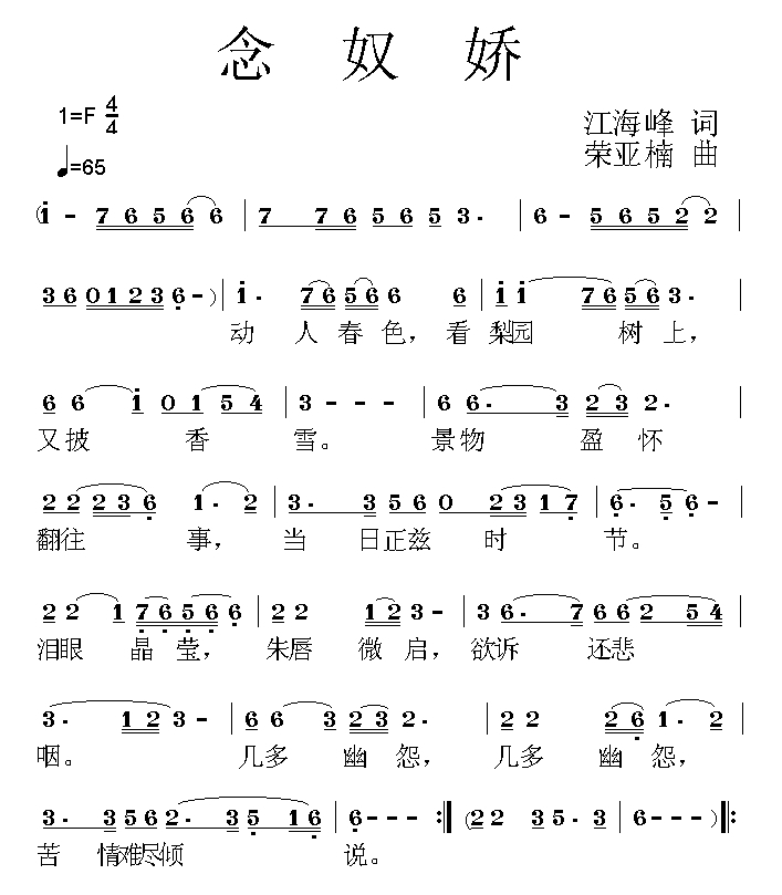 念奴娇简谱-江海峰词 荣亚楠曲简谱