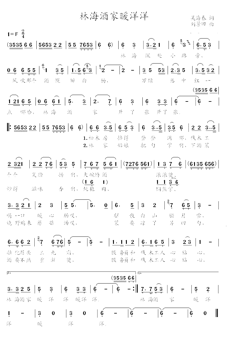 林海酒家暖洋洋简谱-吴海春词/刘景田曲