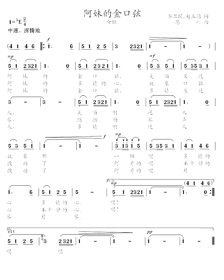 阿妹的金口弦简谱