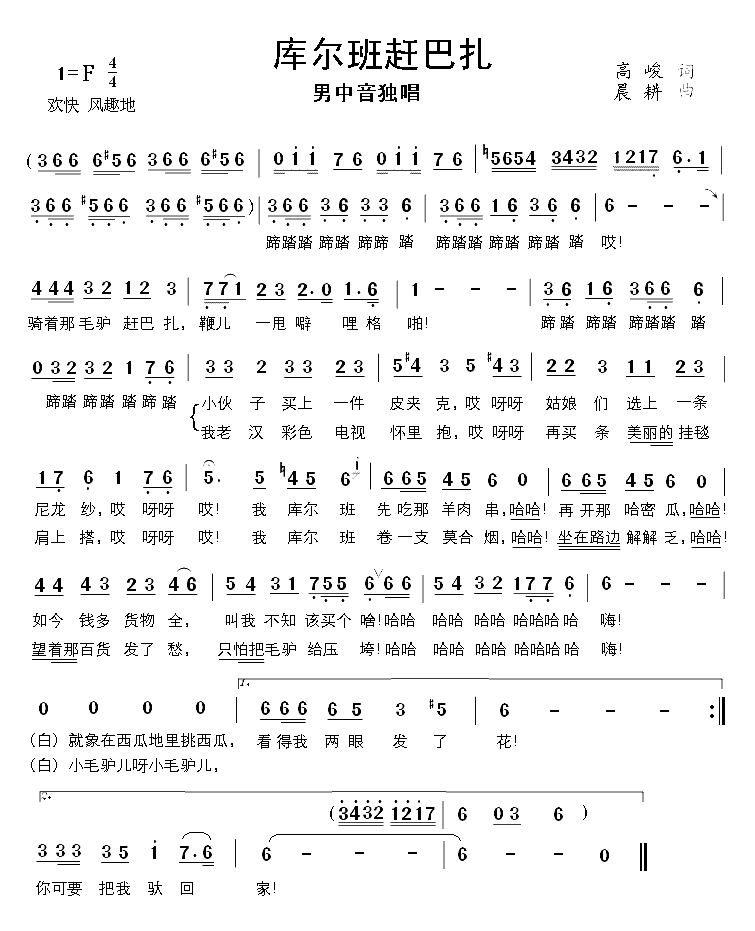 库尔班赶巴扎简谱-高峻词/晨耕曲