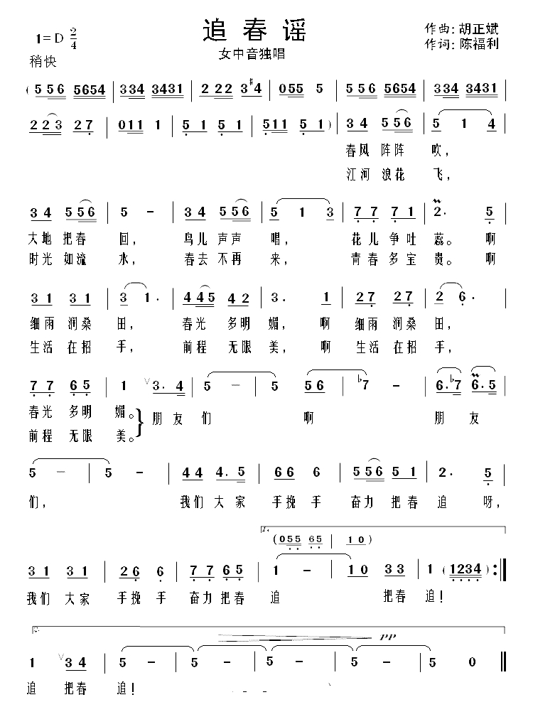 追春谣简谱-胡正斌词/陈福利曲