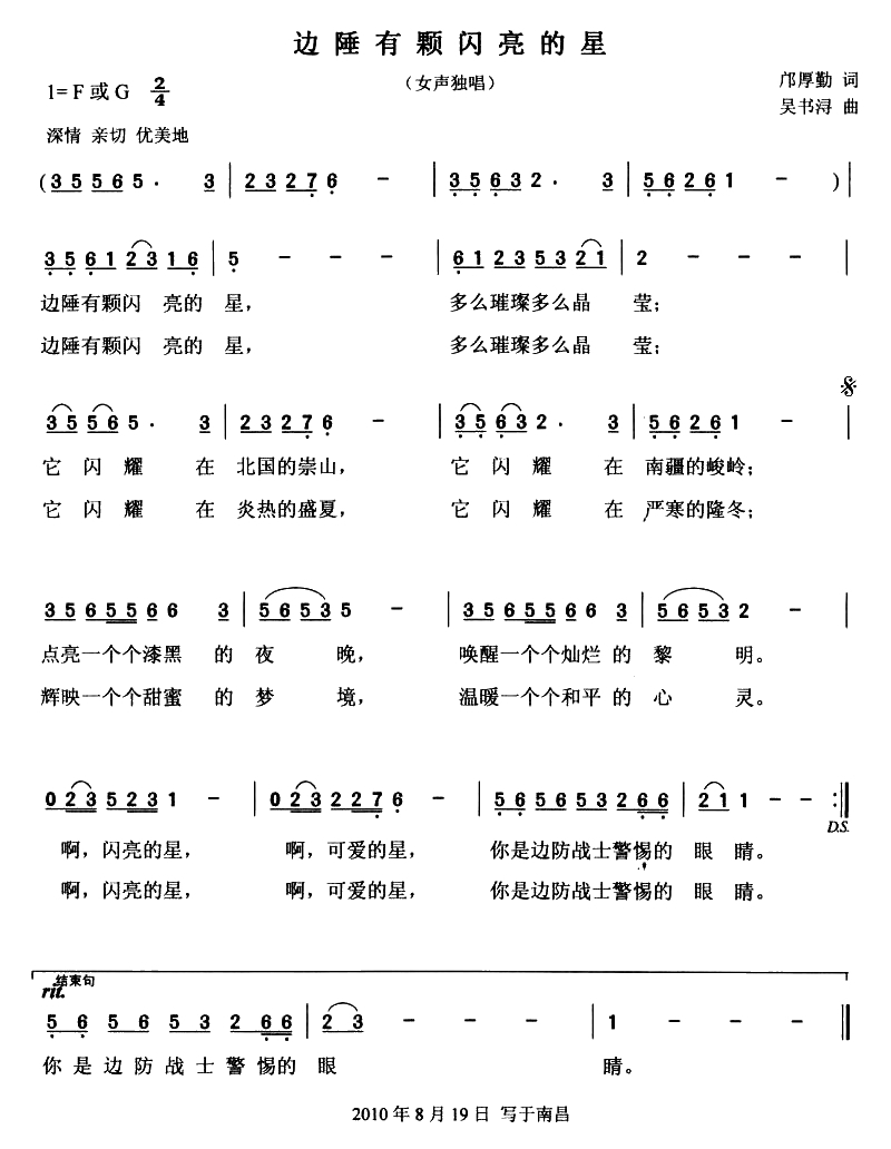 边陲有颗闪亮的星简谱歌词