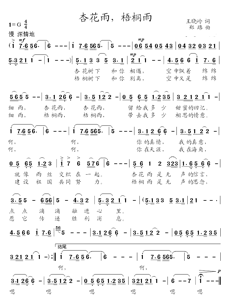 杏花雨,梧桐雨简谱-韩芝萍演唱简谱