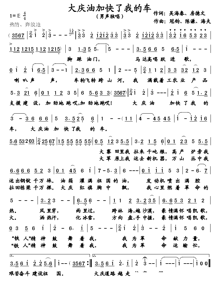 大庆油加快了我的车简谱-蒋大为演唱简谱