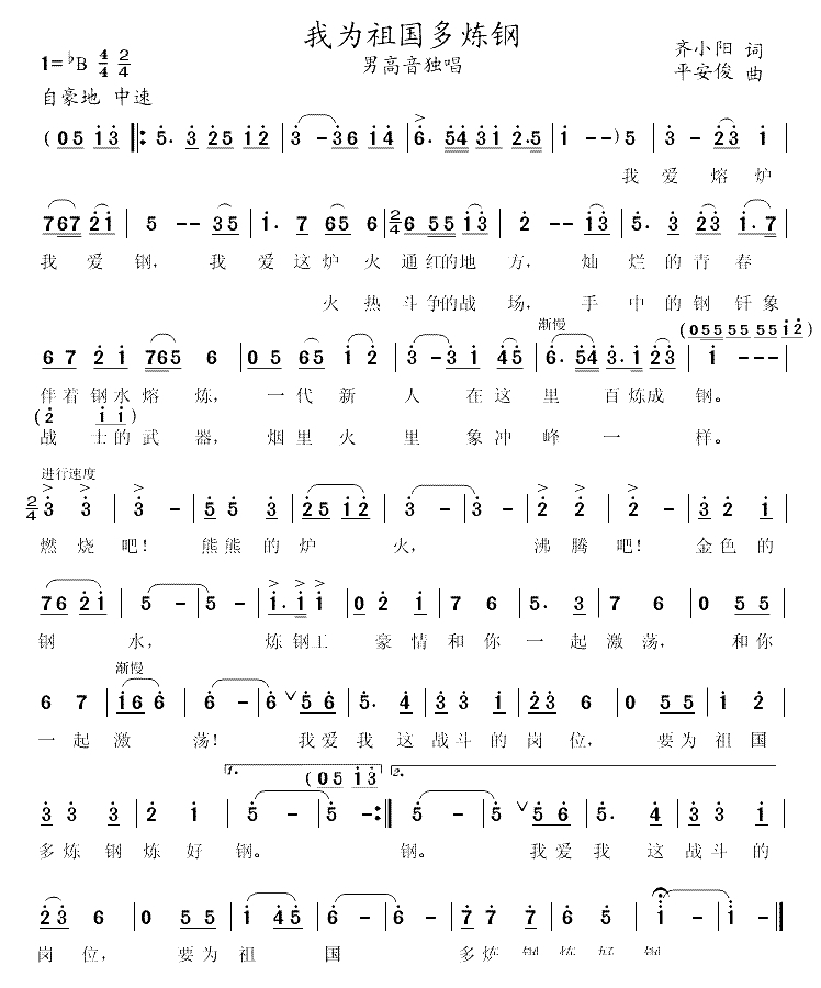 我为祖国多炼钢简谱-齐小阳词/平安俊曲简谱
