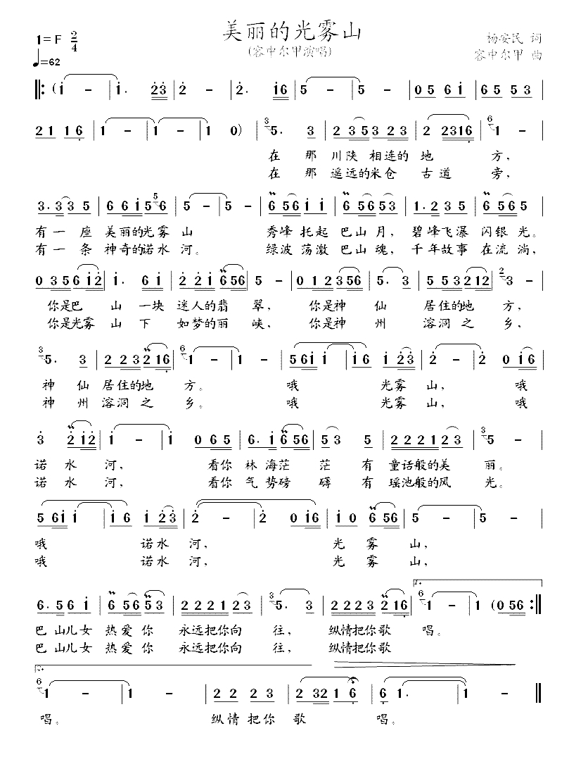 美丽的光雾山简谱-容中尔甲演唱简谱