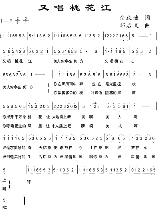 又唱桃花江简谱-佘致迪词/邹启炎曲