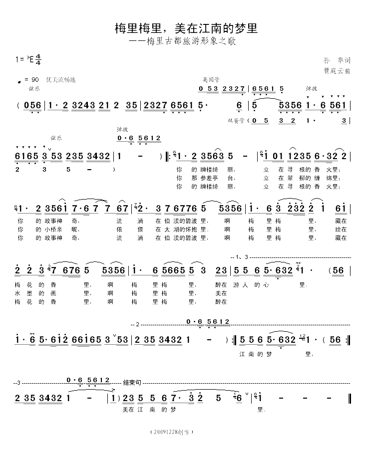 梅里梅里,美在江南的梦里简谱-孙华词/贾庭云曲