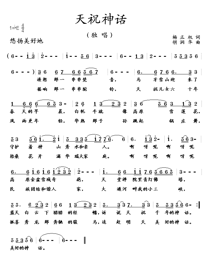 天祝神话简谱-杨正权词/胡润华曲简谱
