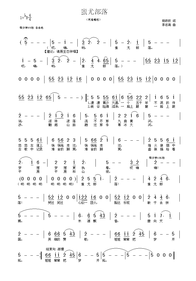 蚩尤部落简谱-杨政权词/李志高曲