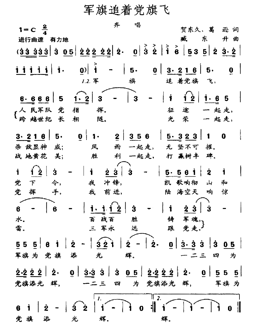 军旗追着党旗飞简谱-贺东久 葛逊词 臧东升曲