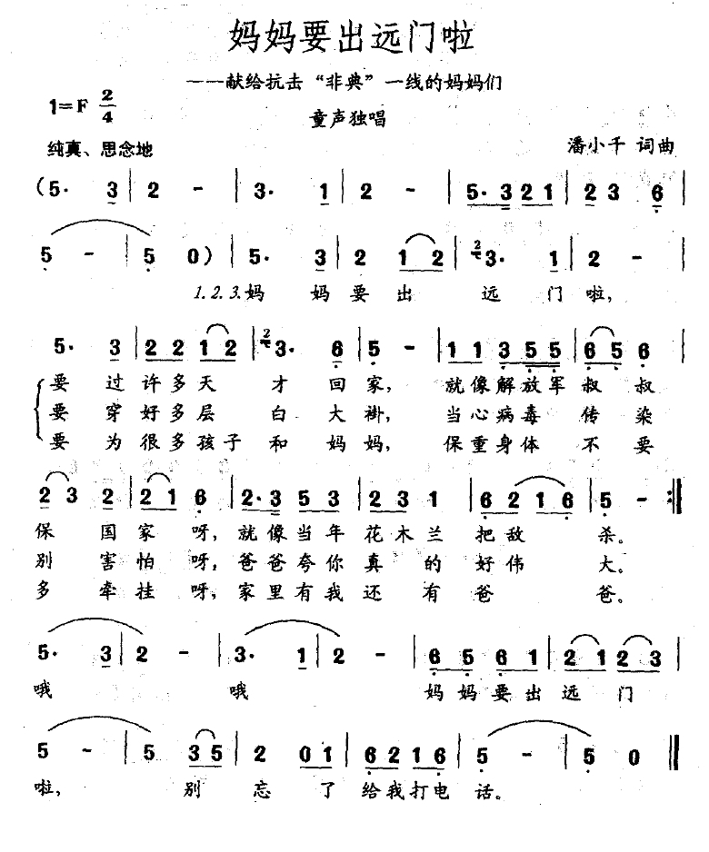 妈妈要出远门啦简谱-献给抗击“非典”一线的妈妈们