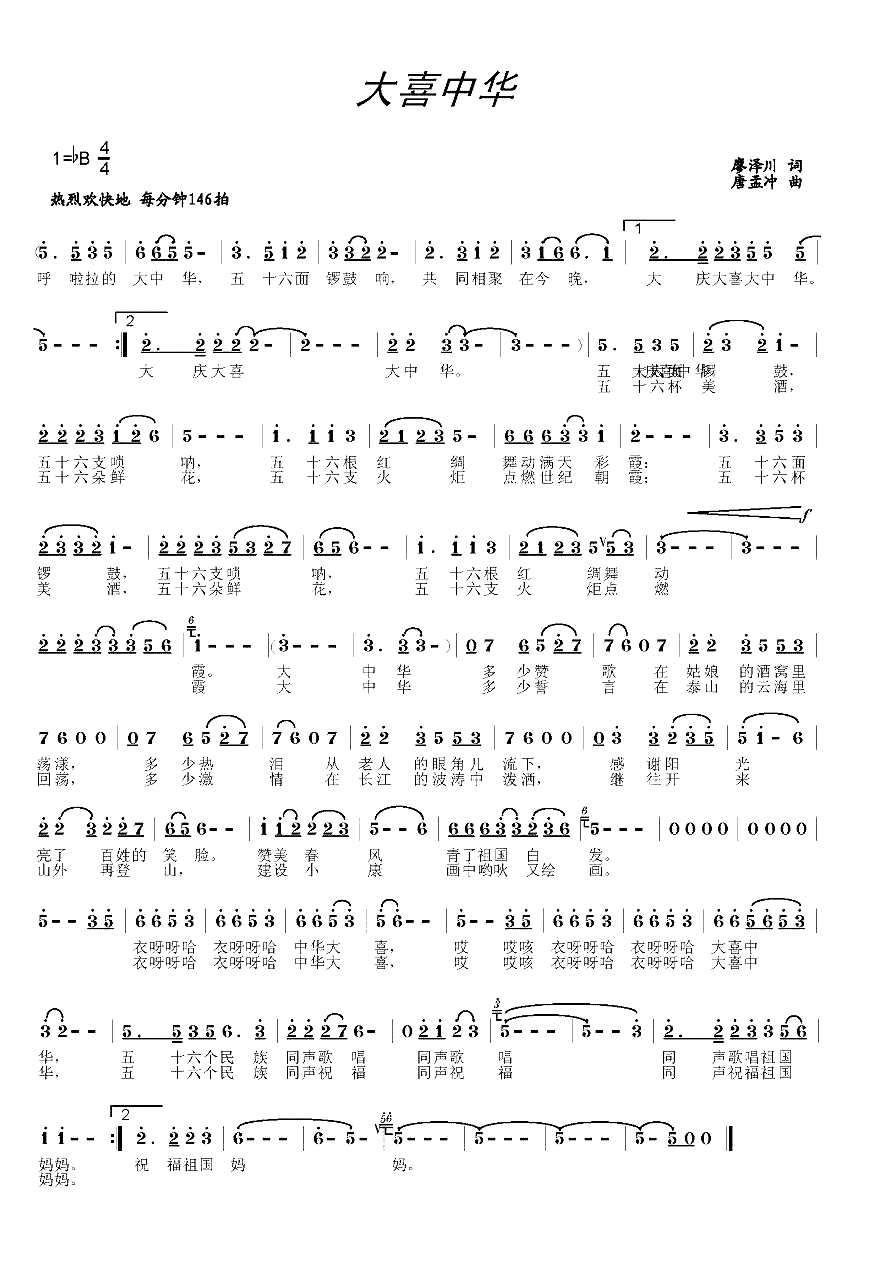 大喜中华简谱-廖泽川词/唐孟冲曲