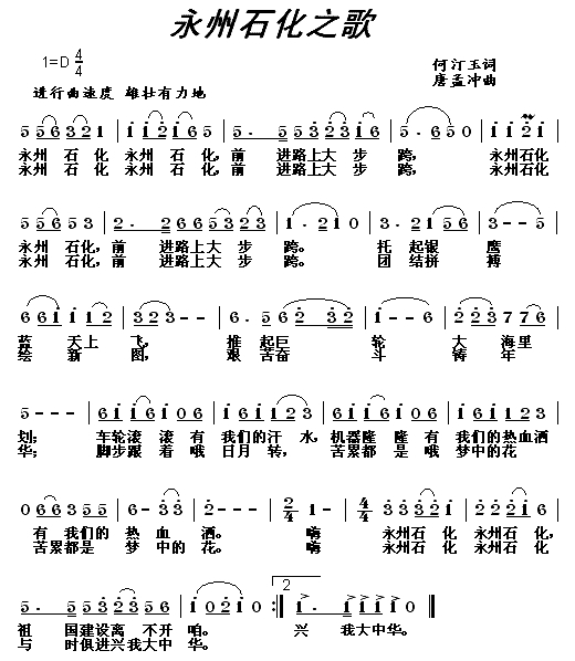 永州石化之歌简谱-何汀玉词/唐孟冲曲