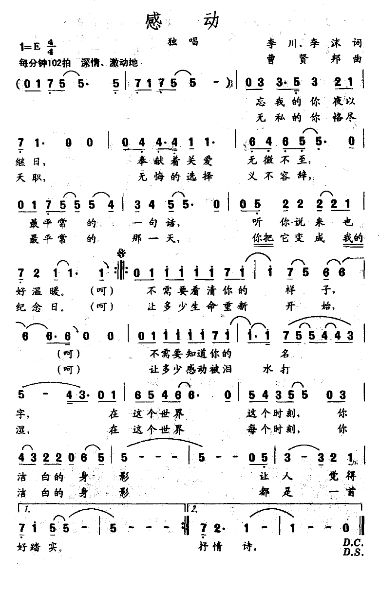 感动简谱-李川词 曾贤邦曲
