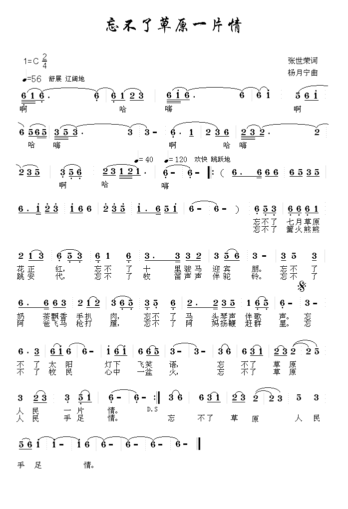 忘不了草原一片情简谱-朱跃明演唱简谱