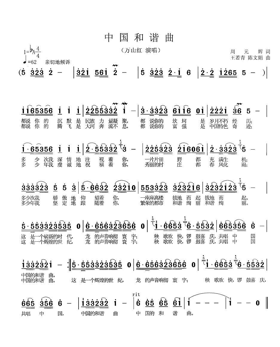 中国和谐曲简谱-万山红演唱