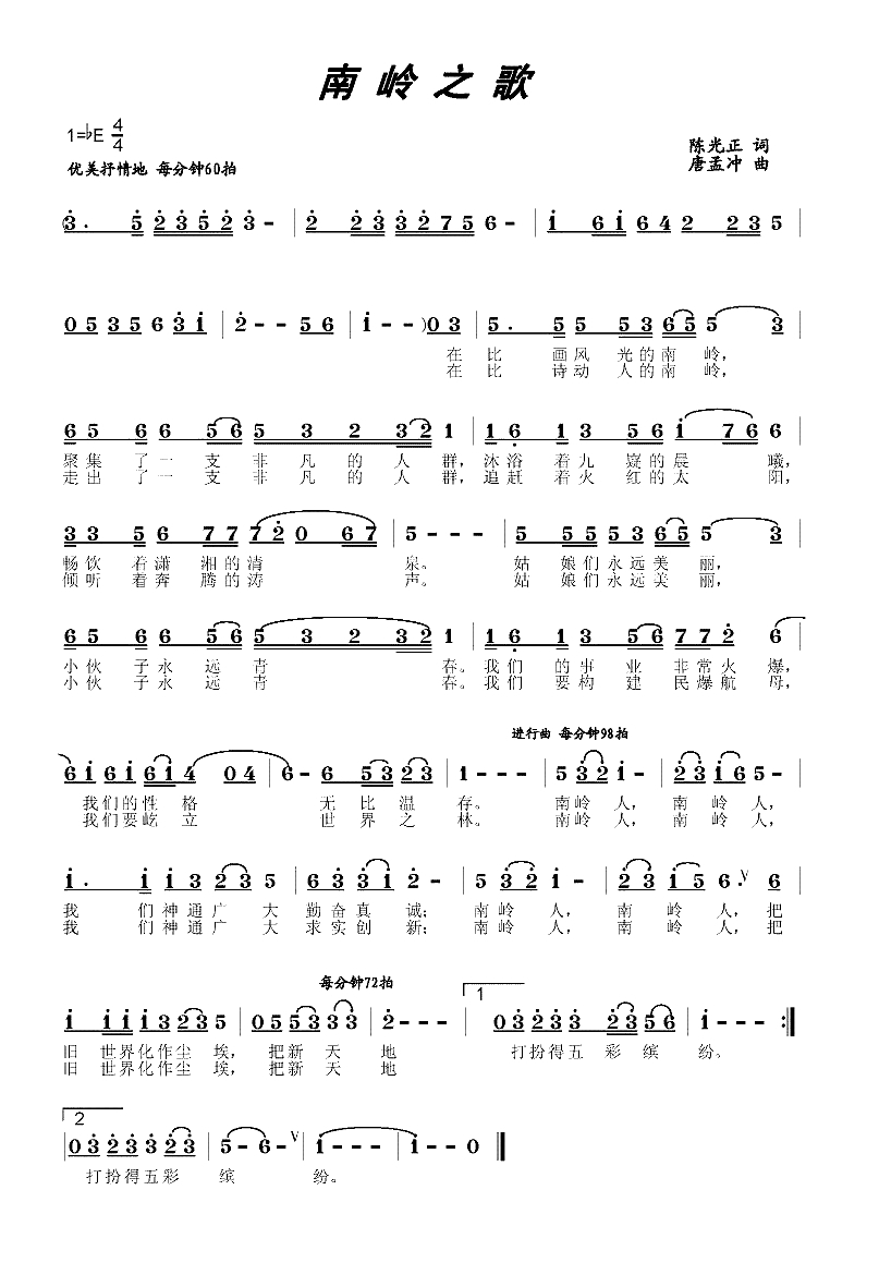 南岭之歌简谱-陈光正词/唐孟冲曲