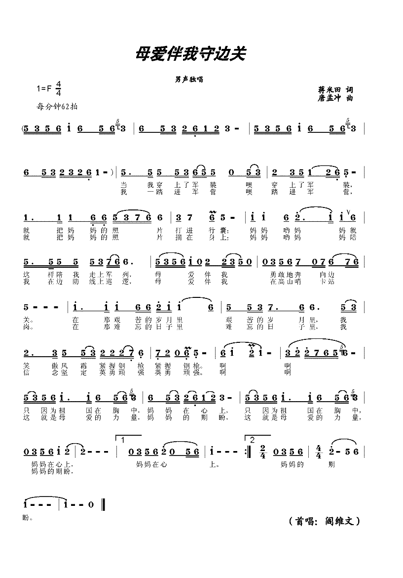母爱伴我守边关简谱-吕继宏演唱简谱