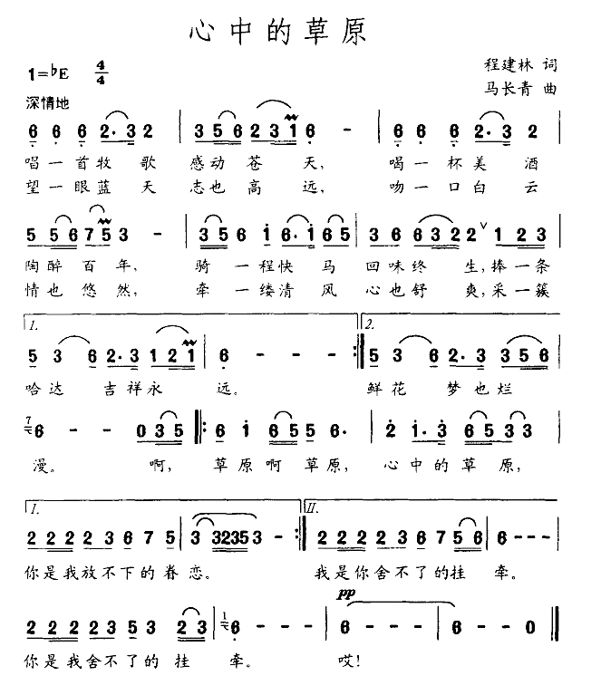心中的草原简谱-程建林词 马长青曲简谱