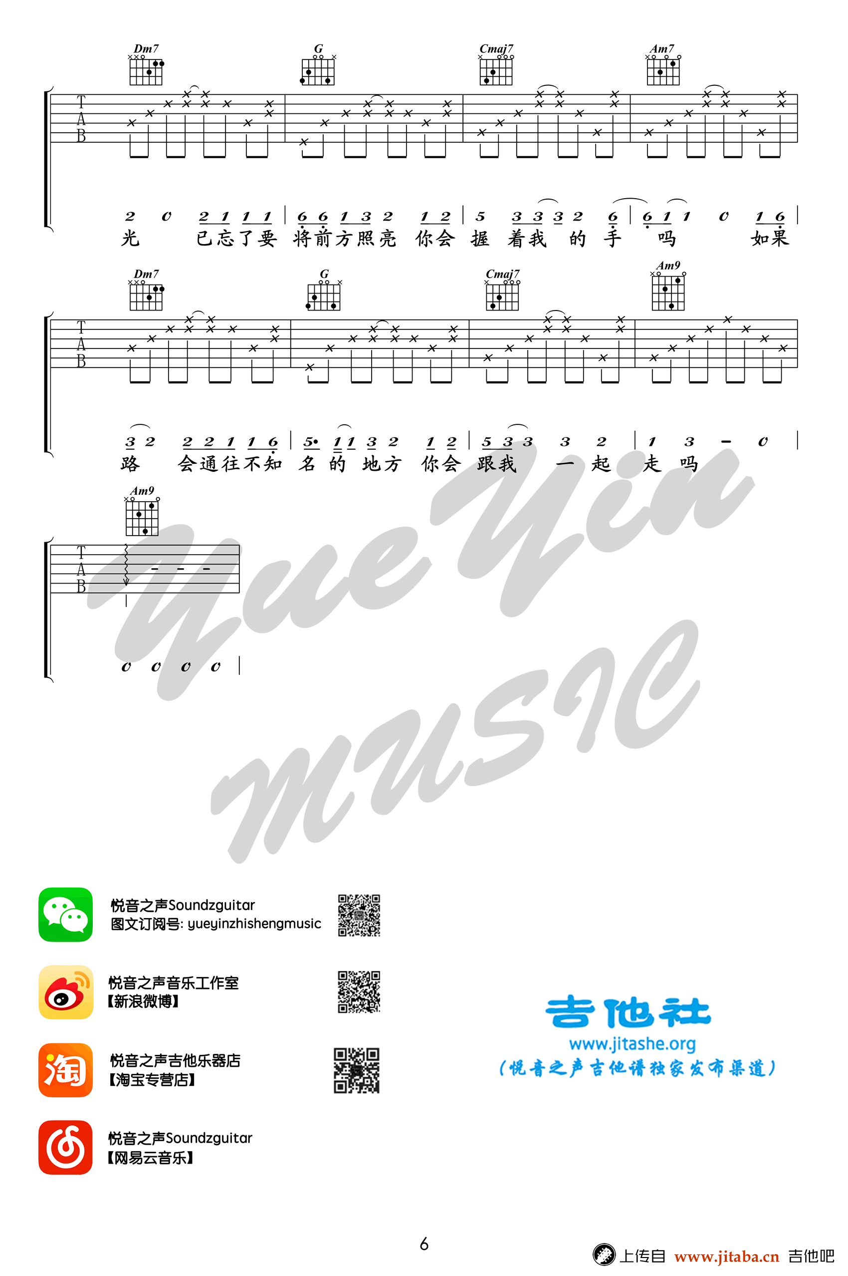 无问吉他谱,毛不易演唱,男生调降半音调弦,女生调变调夹夹五品。电影《无问西东》主题曲,无问吉他六线谱,完整还原版共六张高清图片谱。感谢悦音之声出品,吉他吧网站推荐分享。 低沉又温暖的歌声,用一首歌道出了一生。只问深情,无问西东,不问过往,不打扰,你能做到吗?一生太短, 一瞬长。 如果让你提前知道你的人生, 你还会选择勇敢前来吗? 也许会, 也许不会, 没有对错, 只有真心与否。
