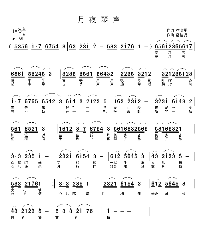 月夜琴声简谱-李晓军词/潘桂贤曲