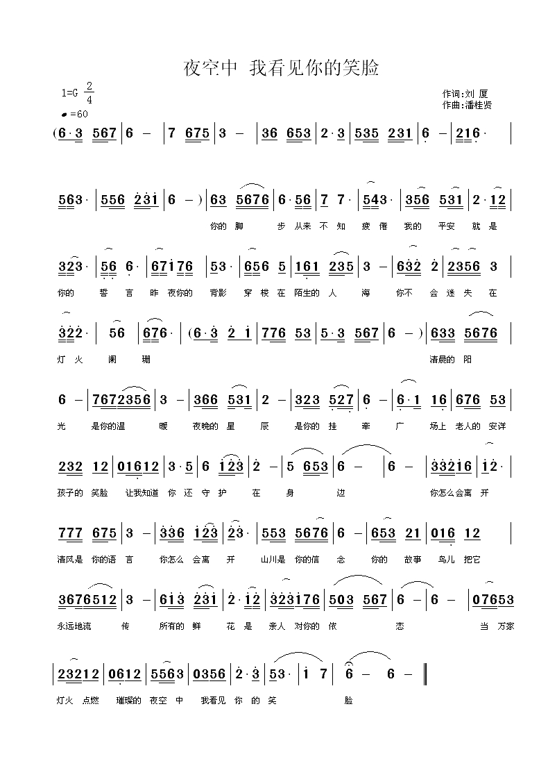 夜空中 我看见你的笑脸简谱-刘厦词/潘桂贤曲