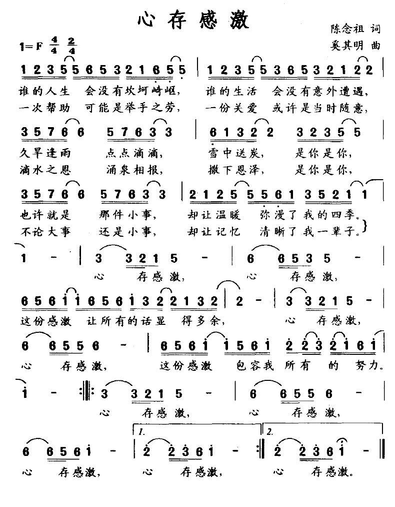心存感激简谱-陈念祖词 奚其明曲简谱