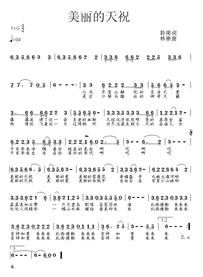 美丽的天祝简谱-聆闻词/林崇曲简谱