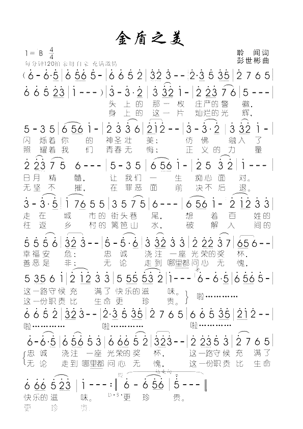 金盾之美简谱-聆闻词/彭世彬曲简谱