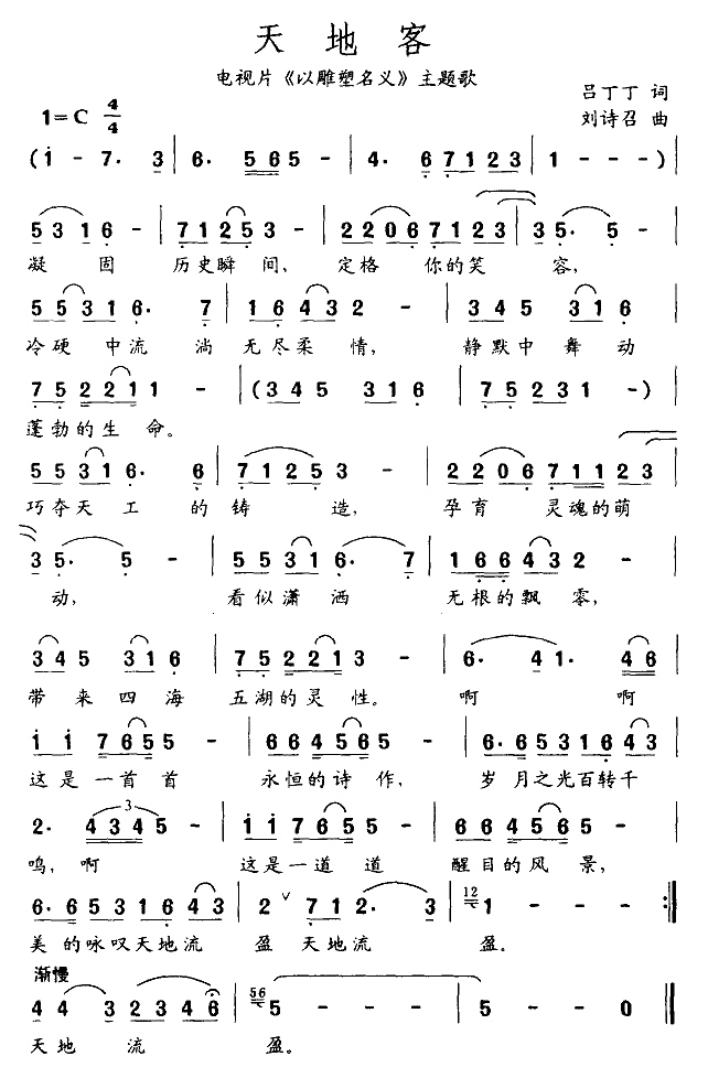 天地客简谱-电视剧《以雕塑名义》主题歌