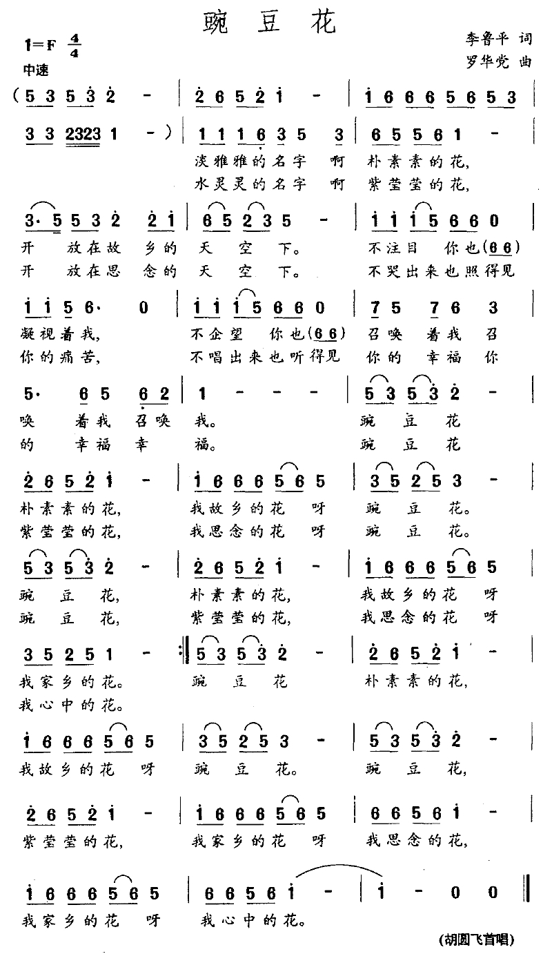 豌豆花简谱-李鲁平词 罗华党曲简谱