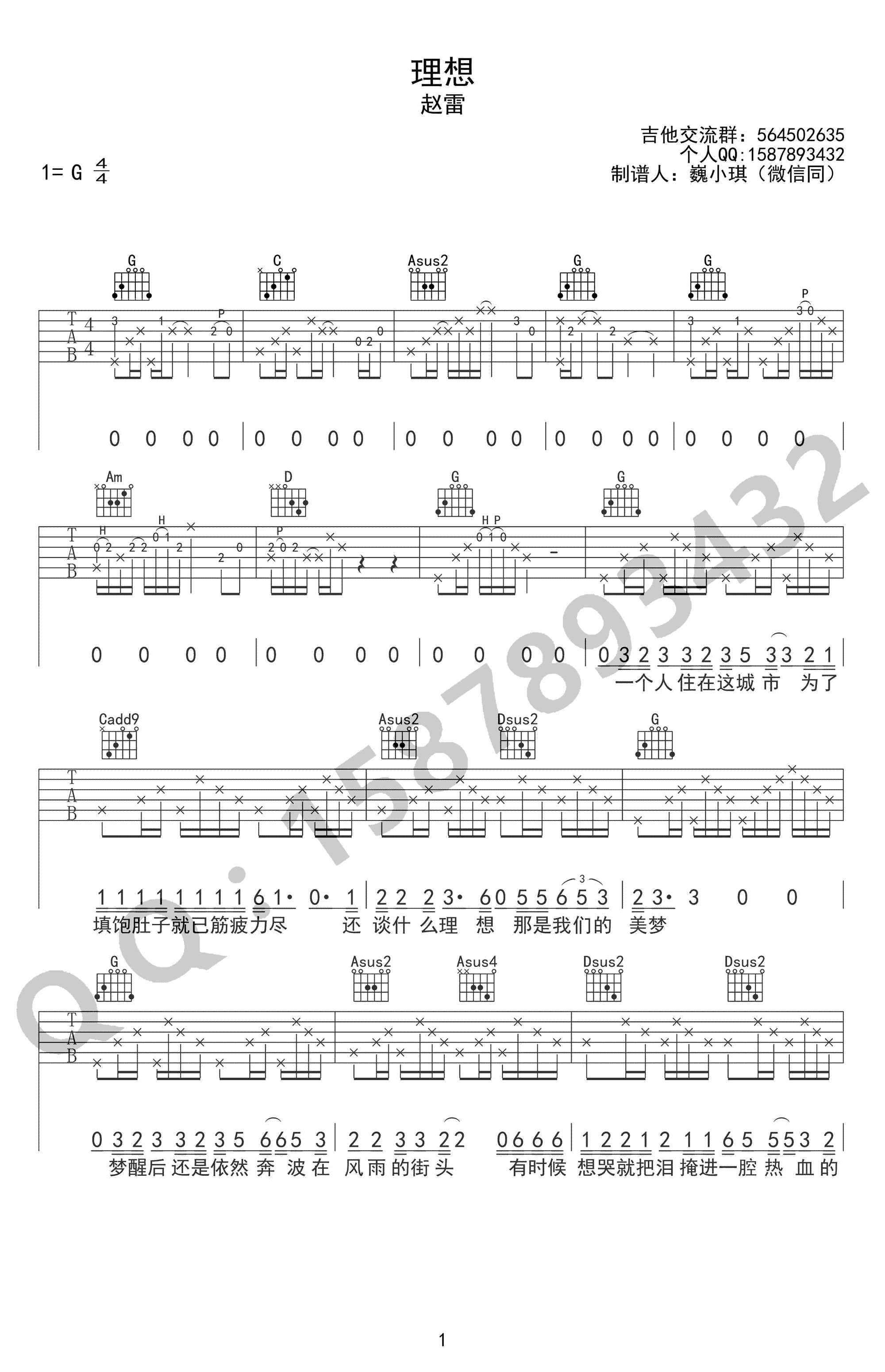 赵雷《理想》吉他谱,G调指法,三张高清弹唱图片谱。一首给人治愈令人感动的民谣歌曲,理想六线谱,巍小琪制谱,吉他吧网站推荐上传。 谁又不是怀揣着理想却有茫茫看不到希望呢?这首歌让我们想起了曾经的理想,想起了那些抑郁又不甘的日子。没有岁月变迁的理想,只有被时间冲淡的初心。理想仍在那里,只是追逐的人不在了而已。