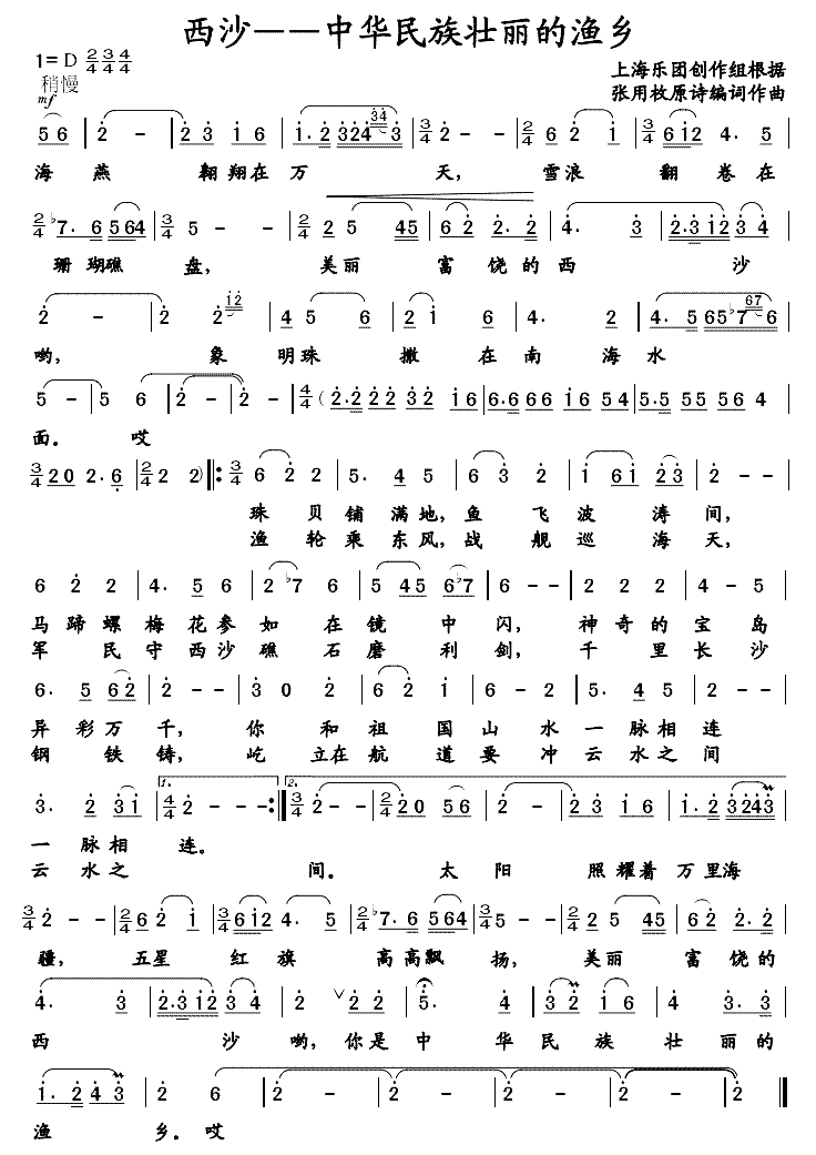 西沙—中华民族壮丽的渔乡简谱