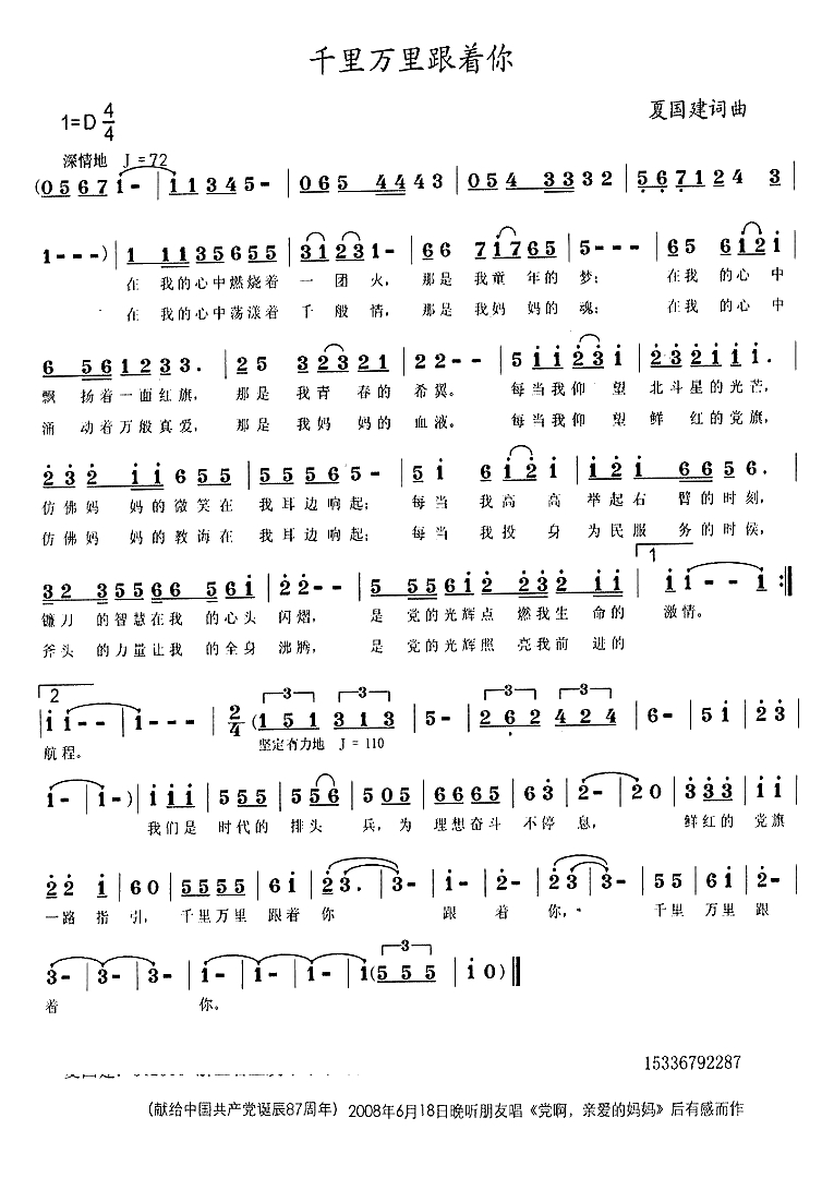 千里万里跟你走简谱-夏国建词/夏国建曲