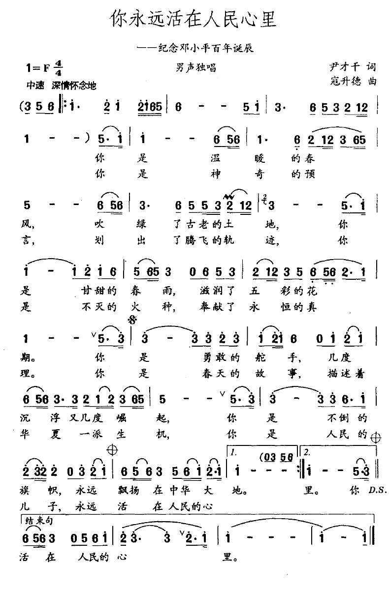 你永远活在人民心里简谱-纪念邓小平百年诞辰简谱