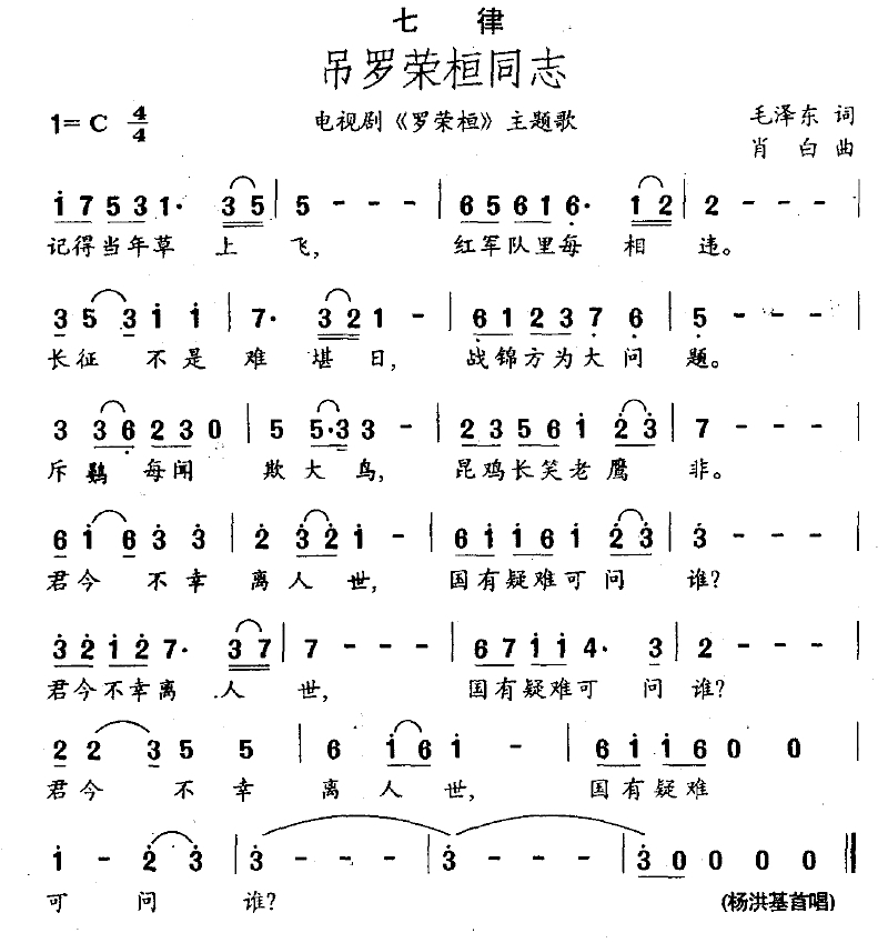 七律·吊罗荣桓同志简谱-电视剧《罗荣桓》主题歌简谱