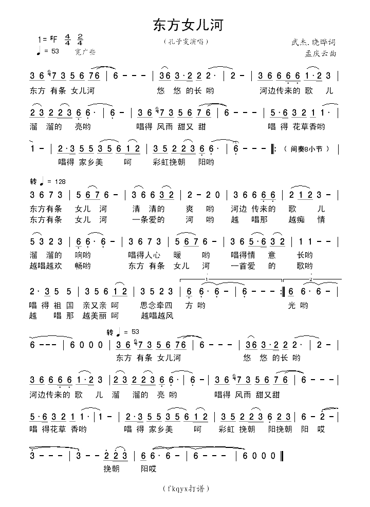 东方女儿河简谱歌词
