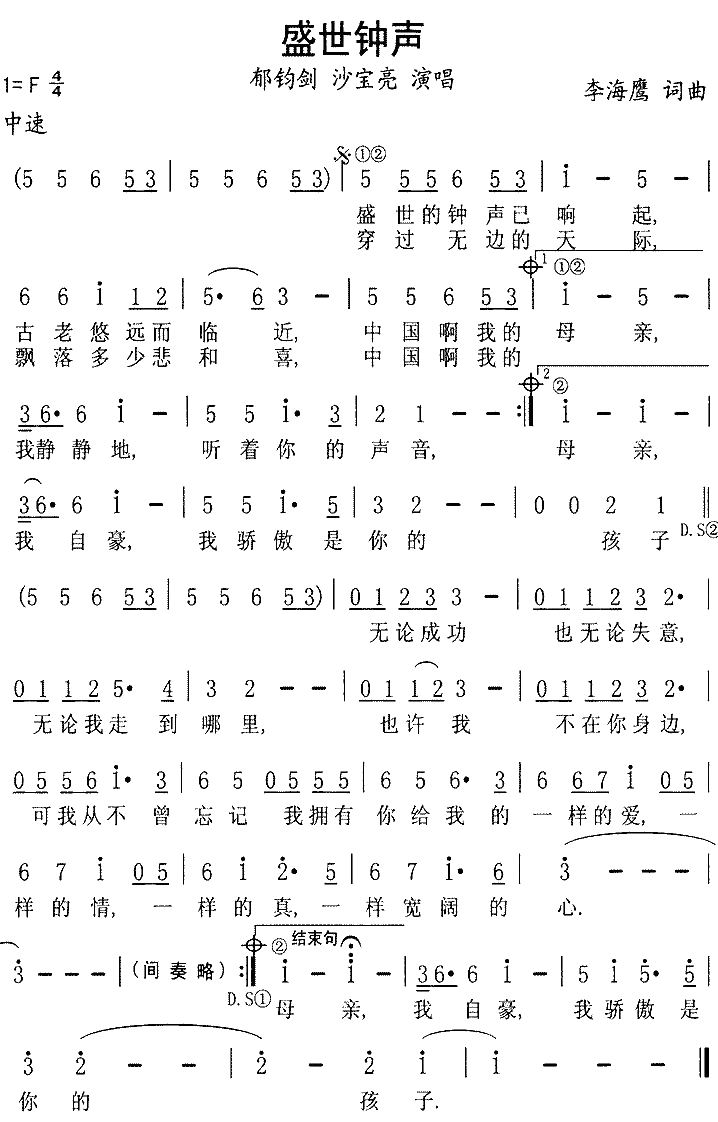 盛世钟声简谱-郁钧剑/沙宝亮演唱