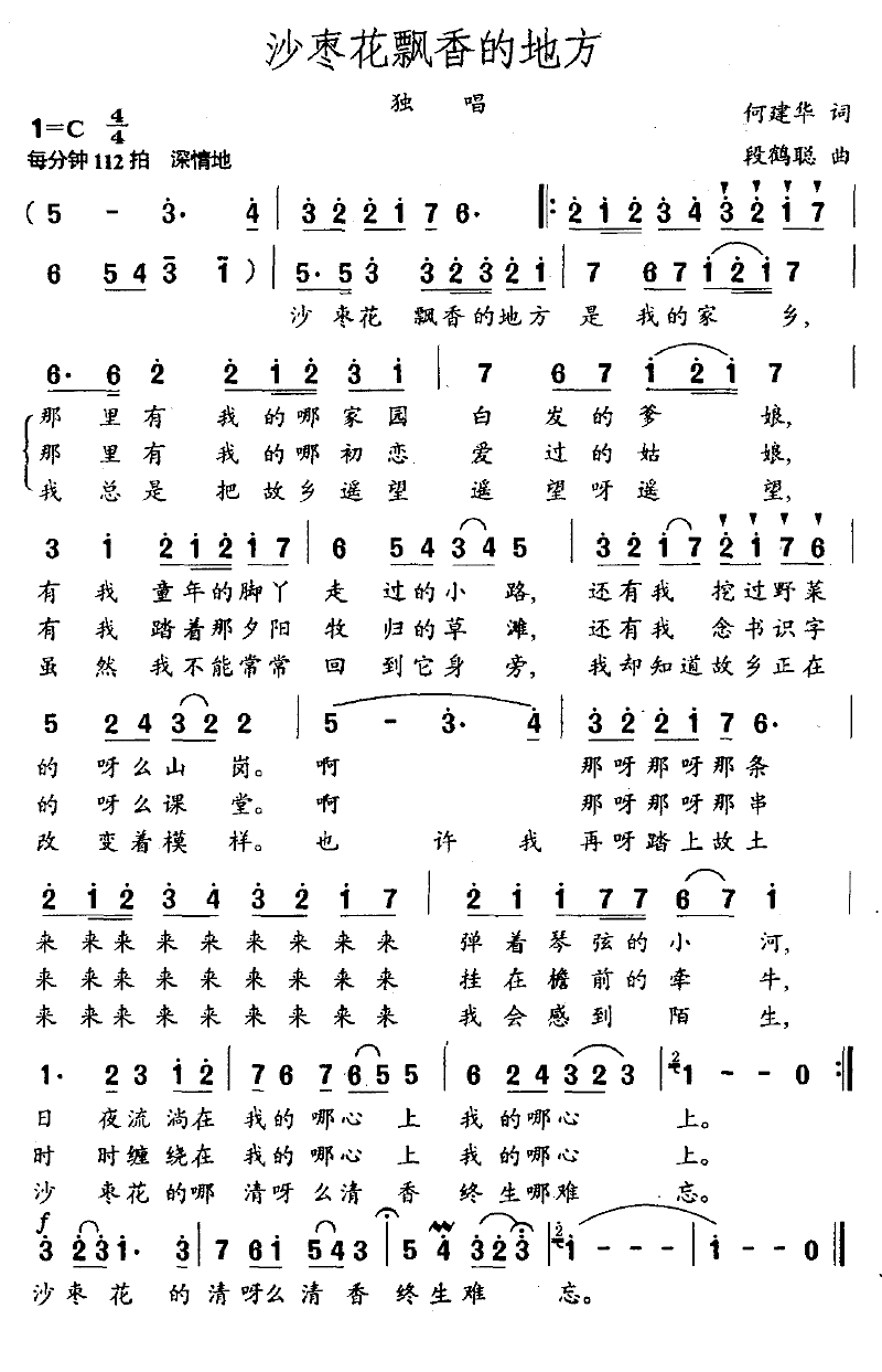 沙枣花飘香的地方简谱-何建华词 段鹤聪曲