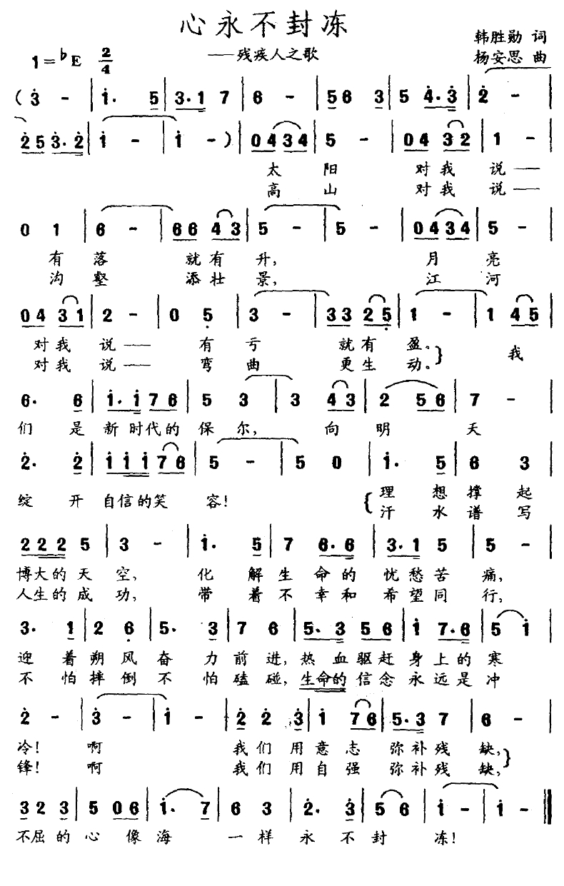 心永不封冻简谱-残疾人之歌